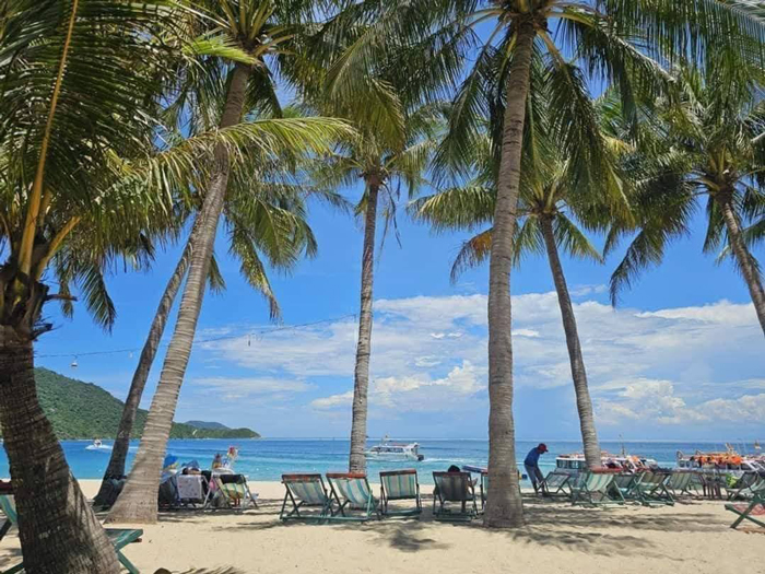 Đặt chân lên đảo, bạn sẽ ngỡ ngàng bởi vẻ đẹp của những bãi biển. Cát ở đây trắng mịn, mềm như nhung, trải dài thoai thoải ôm lấy làn nước biển trong xanh. Từng hàng dừa nghiêng mình rì rào trong làn gió biển cùng với Âm thanh sóng vỗ vào bờ cát tạo nên một khung cảnh thư thái, yên bình hiếm có.