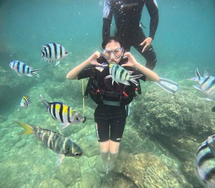 Scuba diving (lặn bình khí): dành cho những ai muốn khám phá sâu hơn, thường từ 5–10 mét dưới mặt nước. Với cách này, bạn có thể nhìn cận cảnh từng cụm san hô, theo dõi đàn cá đủ màu sắc bơi ngay trước mặt, thậm chí bắt gặp những loài sinh vật hiếm gặp. Đi thuyền đáy kính: dành cho du khách không muốn xuống nước. Chỉ cần ngồi trên thuyền, nhìn qua lớp kính trong suốt là có thể ngắm toàn cảnh san hô bên dưới. Ưu điểm của cách này là an toàn tuyệt đối, phù hợp với người lớn tuổi hoặc trẻ nhỏ.